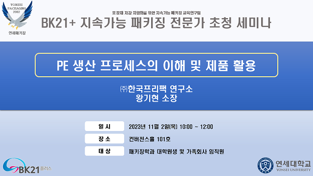 - [전문가 초청 세미나] 2023-2 BK21+ 지속가능 패키징 전문가 초청 세미나 일정 공지