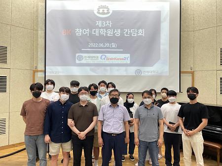 - - 일시: 2022-1학기 - 대상: BK참여대학원생 - 내용 : BK참여대학원생의 연구교류 세미나 진행 : 연구분야별 최신 연구 트렌드 파악 수행 연구의 발전 및 개선 도모