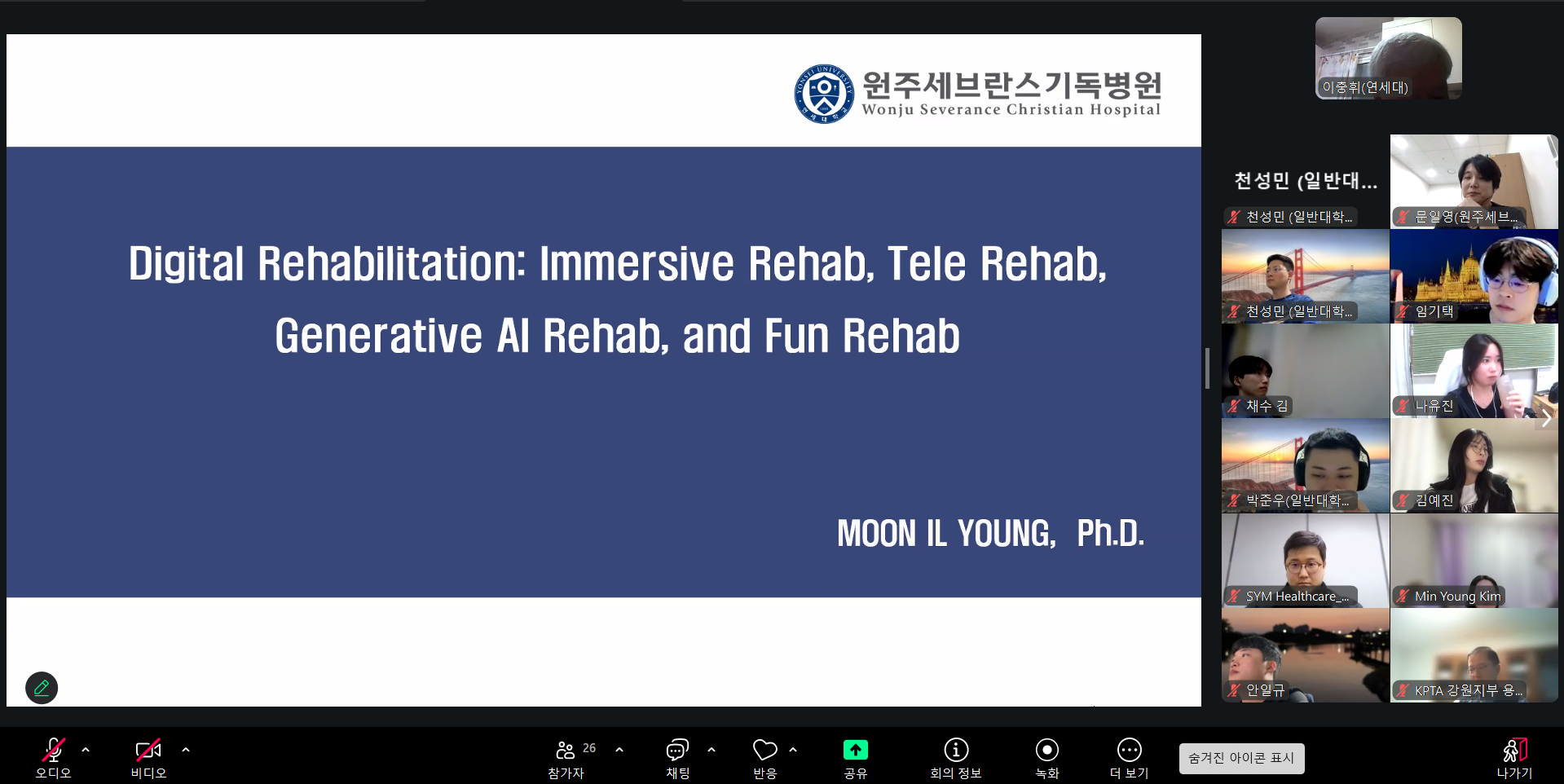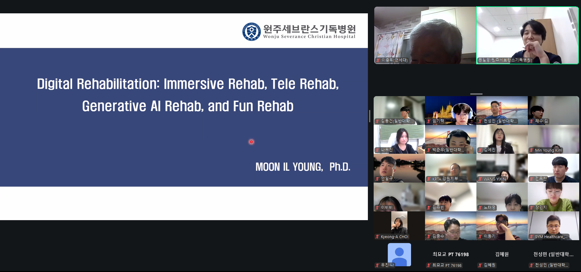19:00 ~ 19:20 / 문일영 박사(원주세브란스기독병원) / Digital Rehabilitation: Immersive Rehab, Tele Rehab, Generative AI Rehab