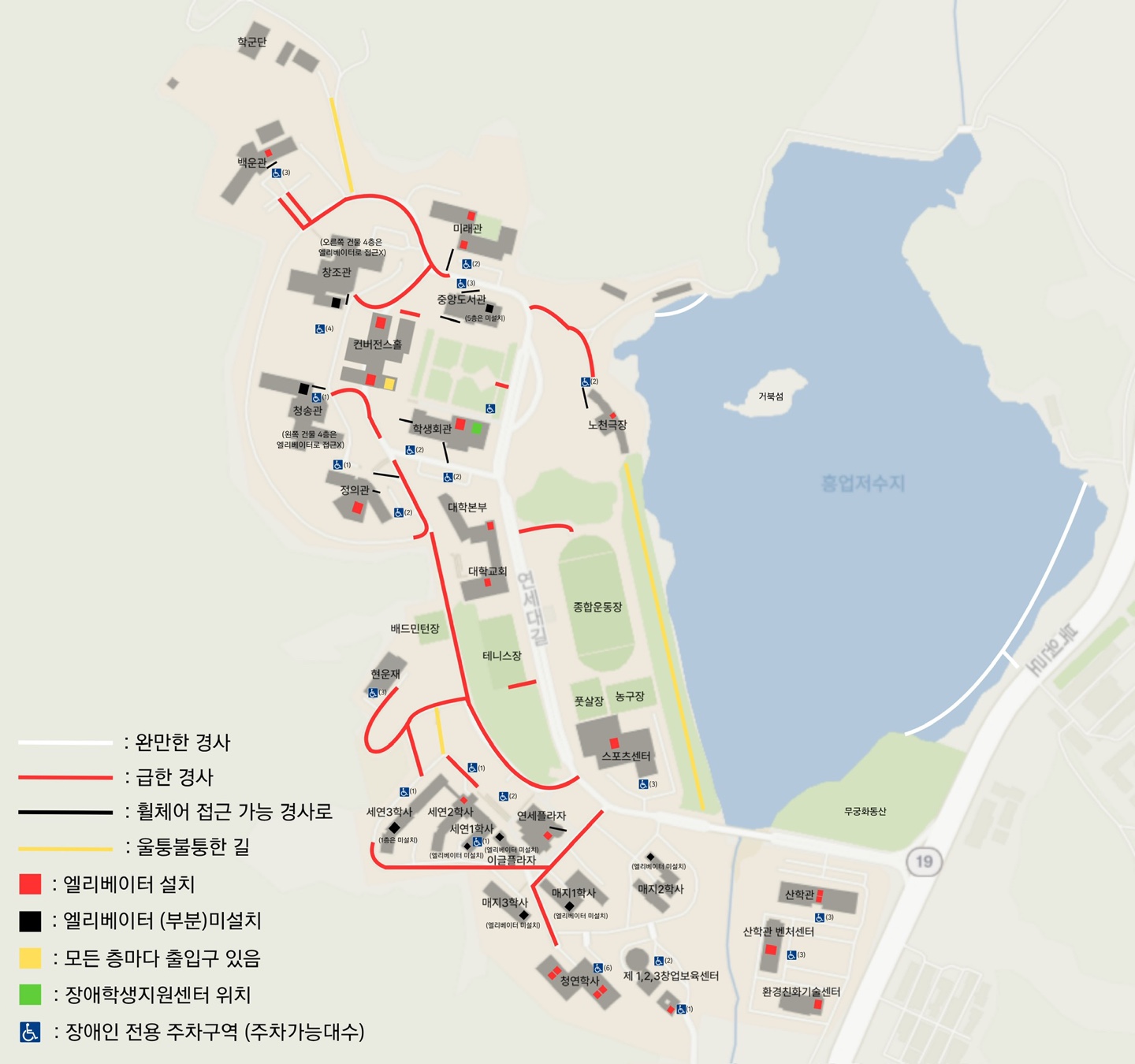 캠퍼스에 이동이 불편한 학생들을 위해 제작된 캠퍼스 전체 지도입니다.