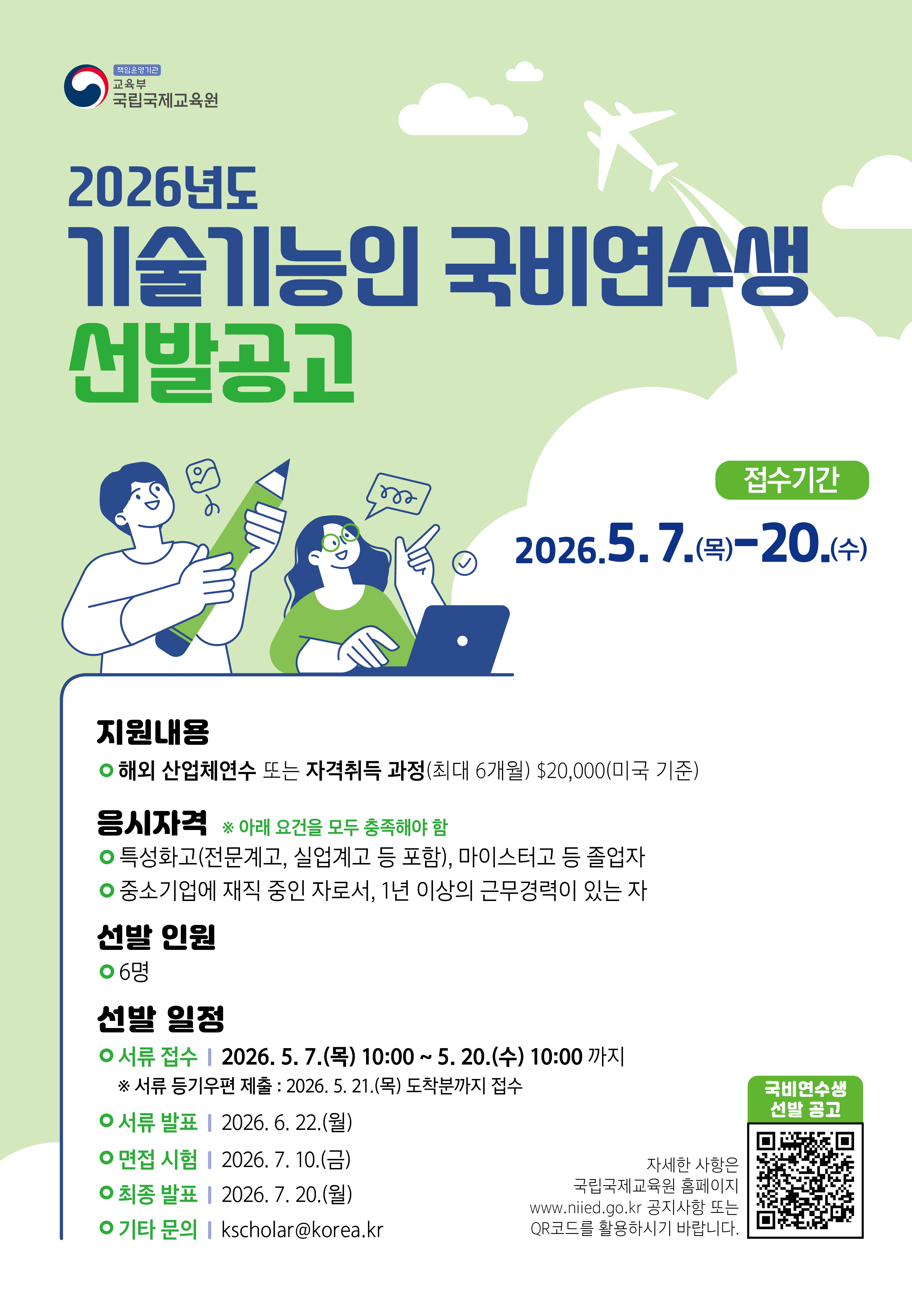 [국립국제교육원] 2026년도 국비유학생(일반 꿈나래 기술·기능인) 선발 시험 공고
